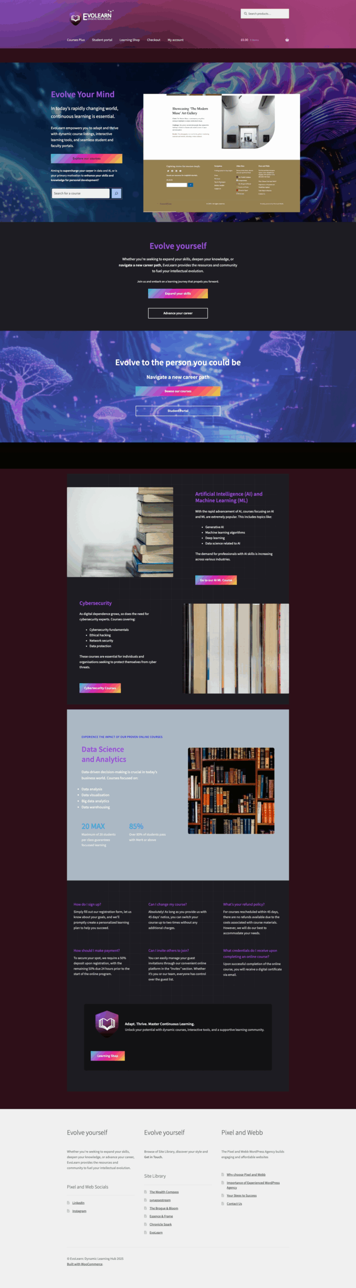 EvoLearn Evolve Your Mind. In today’s rapidly changing world, continuous learning is essential. EvoLearn empowers you to adapt and thrive with dynamic course listings, interactive learning tools, and seamless student and faculty portals. More